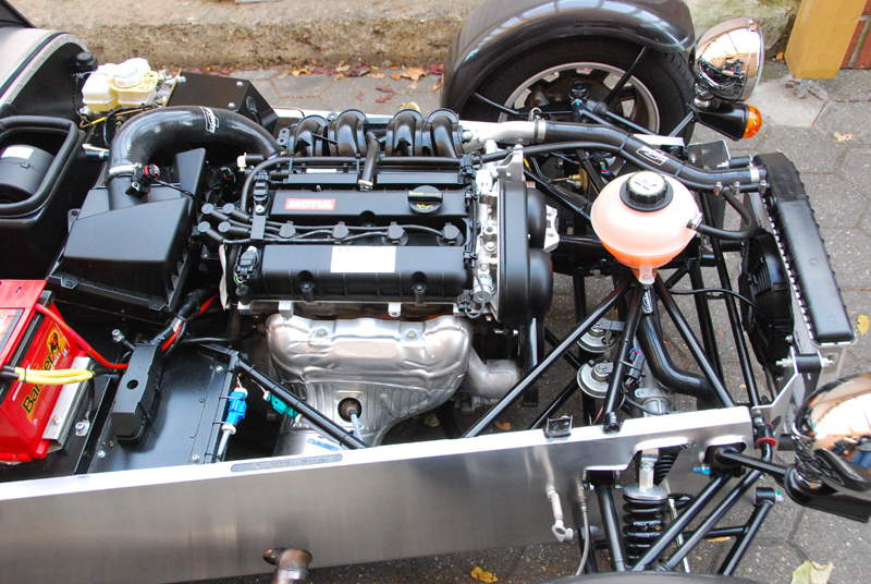Karosserie in Alu blank mit GFK Kotflügel hinten und Nase vorn in schwarz sowie (Echt-)Karbon Kotflügel vorn.