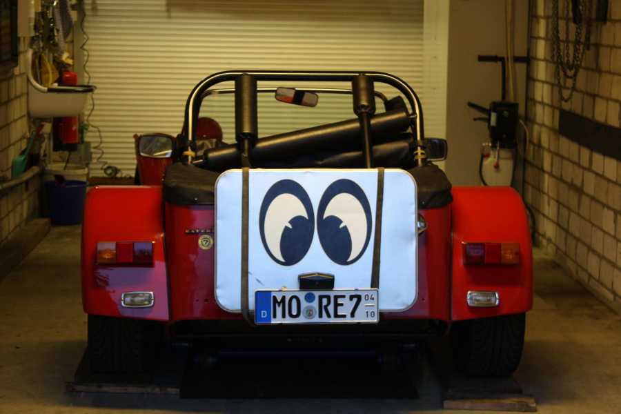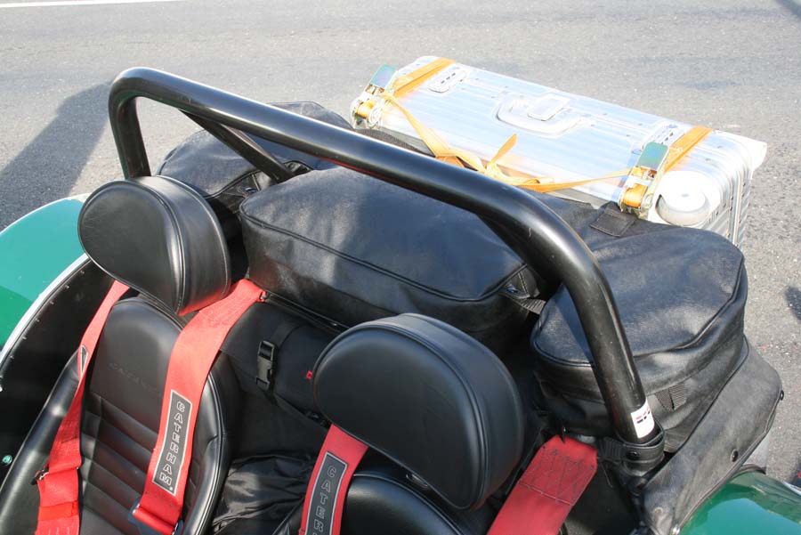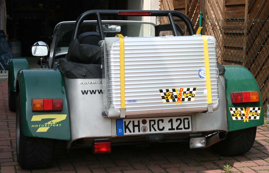 hinter dem Alukoffer noch ein Stück von einer Schlafmatte, schützt den Lack,