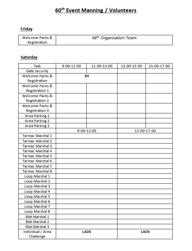 Für die kleinen Veranstaltungen in und um Donington werden Helfer gesucht: